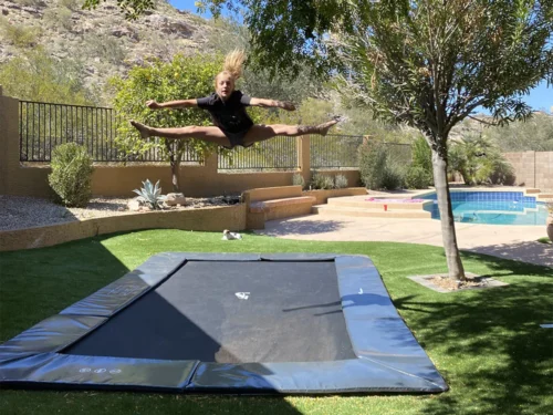 Denne Flat-to-the-Ground-trampolin er udstyret med en unik springdug, der giver en kraftfuld og…